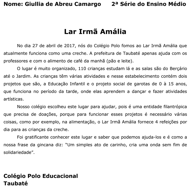 Foi um dia incrível, amamos a visita, e o ato de ajudar foi muito legal, tomara que eles do asilo também tenham gostado da nossa visita, pois esse dia ficará gravado em nossos corações.